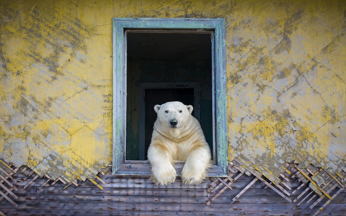 When Kokh’s boat approached the small island of Kolyuchin in the Russian High Arctic, which had been abandoned by humans since 1992, he was surprised to spot movement in one of the houses. Binoculars revealed polar bears – more than 20 in total – exploring the ghost town. Dmitry used a low-noise drone to document them.