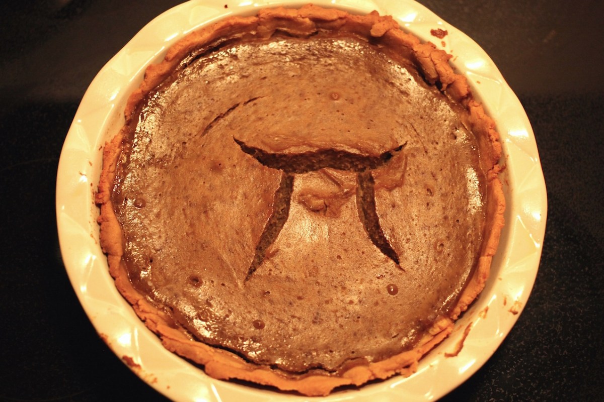 Over Thanksgiving, my wife planned to bake a pumpkin pie and look what she got. It could be a pagoda or a portal dolmen but I think it’s a Pumpkin PI. ;-)